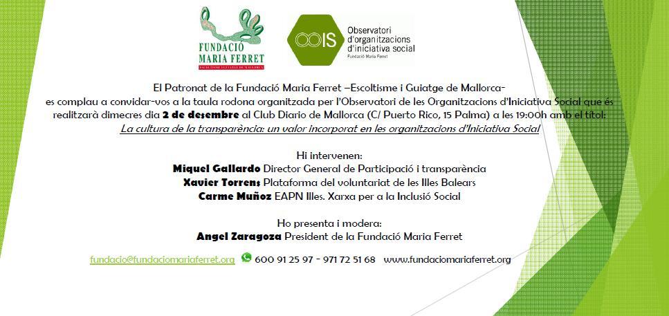 Ens complau convidar-vos a tots i a totes a la taula rodona que es realizarà dimecres dia 2 de desembre al Club Diario de Mallorca